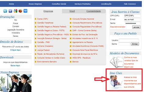 • Acesse o menu sites úteis;
