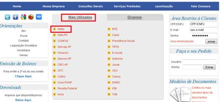 • Na aba mais utilizados clique na opção Sefaz;