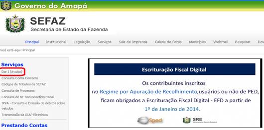 • Em Serviços clique na opção DAR I (Avulso);