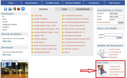 2º Passo - Selecione o menu Sites Úteis;