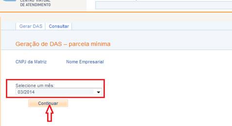9º Passo – Na tela Gerar DAS selecione a competência (mês/ano) desejada, após clique no botão Continuar;
