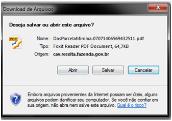 12º - Passo – Clique no botão Salvar para salvar a guia no seu computador e/ou clique no botão Abrir para imprimir a guia gerada para pagamento.
