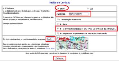Logo após digite no local indicado os caracteres informados, em seguida clique no botão “Cadastrar”.