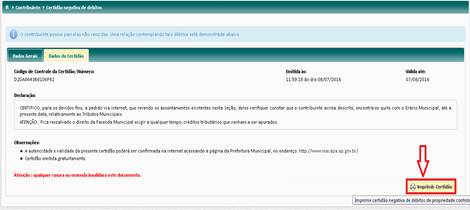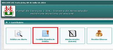 4º - Clique no botão “CERTIDÃO NEGATIVA DÉBITOS”.