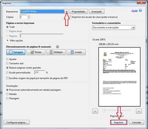 6.1 - Após clicar no botão imprimir selecione a impressora CutPDF Wrint, em seguida clique botão Imprimir.