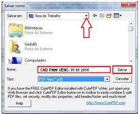 Após ter clicado no botão imprimir, clique no botão Alterar e selecione a impressora CutePDF Writer, em seguida clique no botão imprimir.