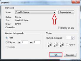 6.1 - Após clicar no botão imprimir, na setinha ao lado direito do campo Nome selecione a impressora CutePDF Writer, em seguida clique no botão OK.