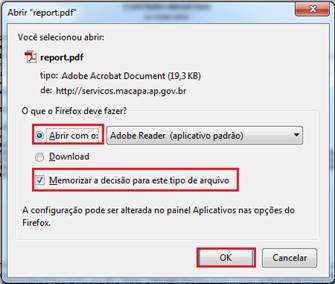 6.1 - Após clicar no botão, marque a opção Abrir com o e marque também a opção Memorizar a decisão para este tipo de arquivo, em seguida clique no botão OK.
