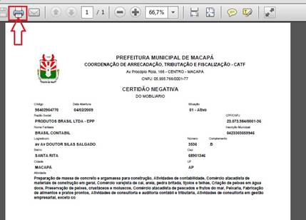 Exemplo: A Prefeitura Municipal por algum motivo, devido ou indevido, lança débito no conta corrente da empresa, caso a certidão não esteja armazenada no computador, não haverá como emitir uma nova nem tão pouco poderá ser emitido a 2ª via da certidão anterior, motivo pelo qual, a importância da renovação e armazenamento, uma vez a certidão salva, o contribuinte poderá ter o débito, porém terá a certidão na validade.