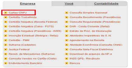 2º - Na aba “Empresa” selecione a opção “Cartão CNPJ”;