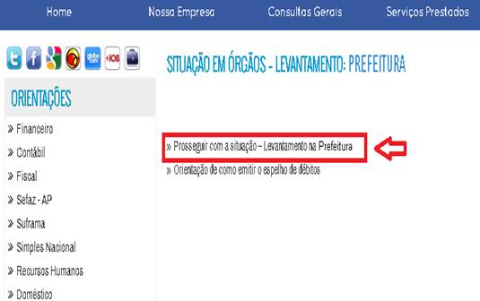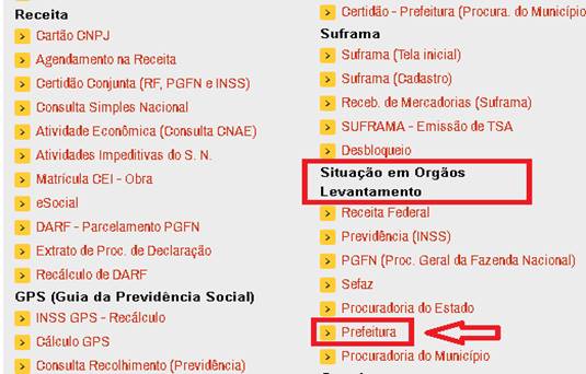– Na aba Empresas >> Situação em Órgãos - Levantamento >> “Prefeitura”.
