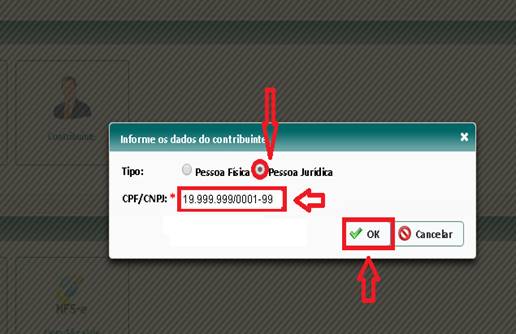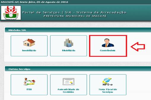 – Após ter clicado na opção anterior, na tela seguinte clique na opção “Contribuinte”.