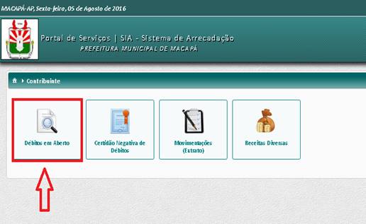 – Após ter preenchido as informações solicitadas anteriormente e clicado em OK, na tela seguinte clicar na opção “Débitos em Aberto”.