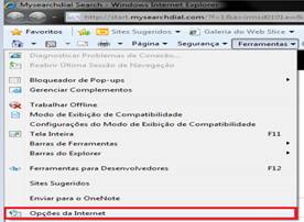 3º Passo – Na próxima tela clique em Opções da Internet;