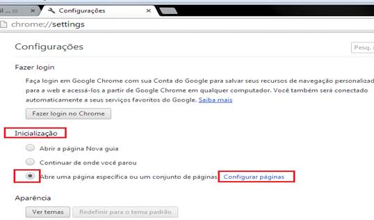 4º Passo – Na janela Configurações, em Inicialização, selecione a opção